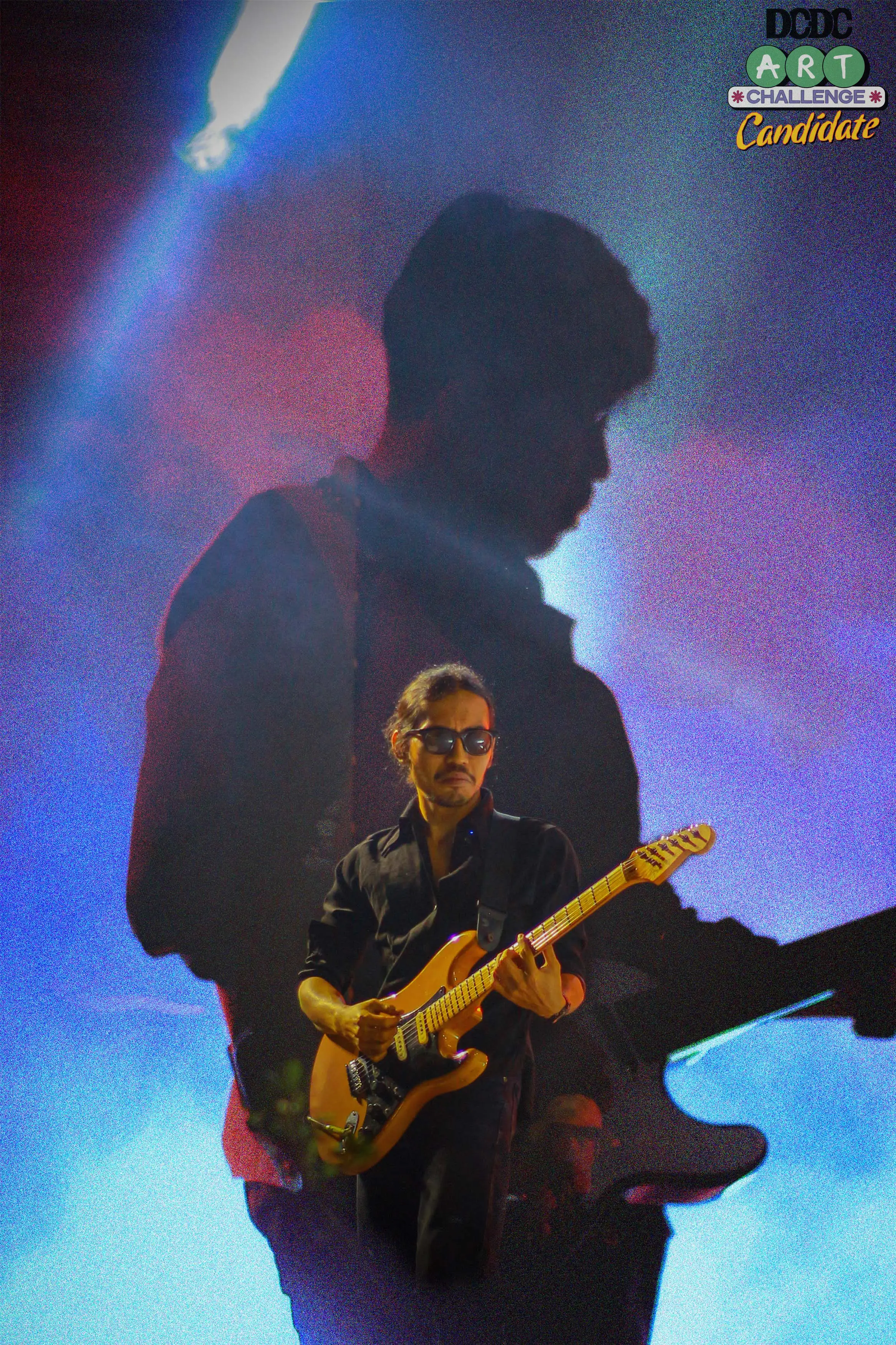 Penampilan Gitar Dari Gatra Laringal Dipadukan Dengan Teknik Double Exposure Dari Personil Gitaris The Outline Di Acara Festival Bunga Dan Buah Berastagi 2024, Berastagi, Sumatera Utara, 31 Juli - 2 Agustus 2024