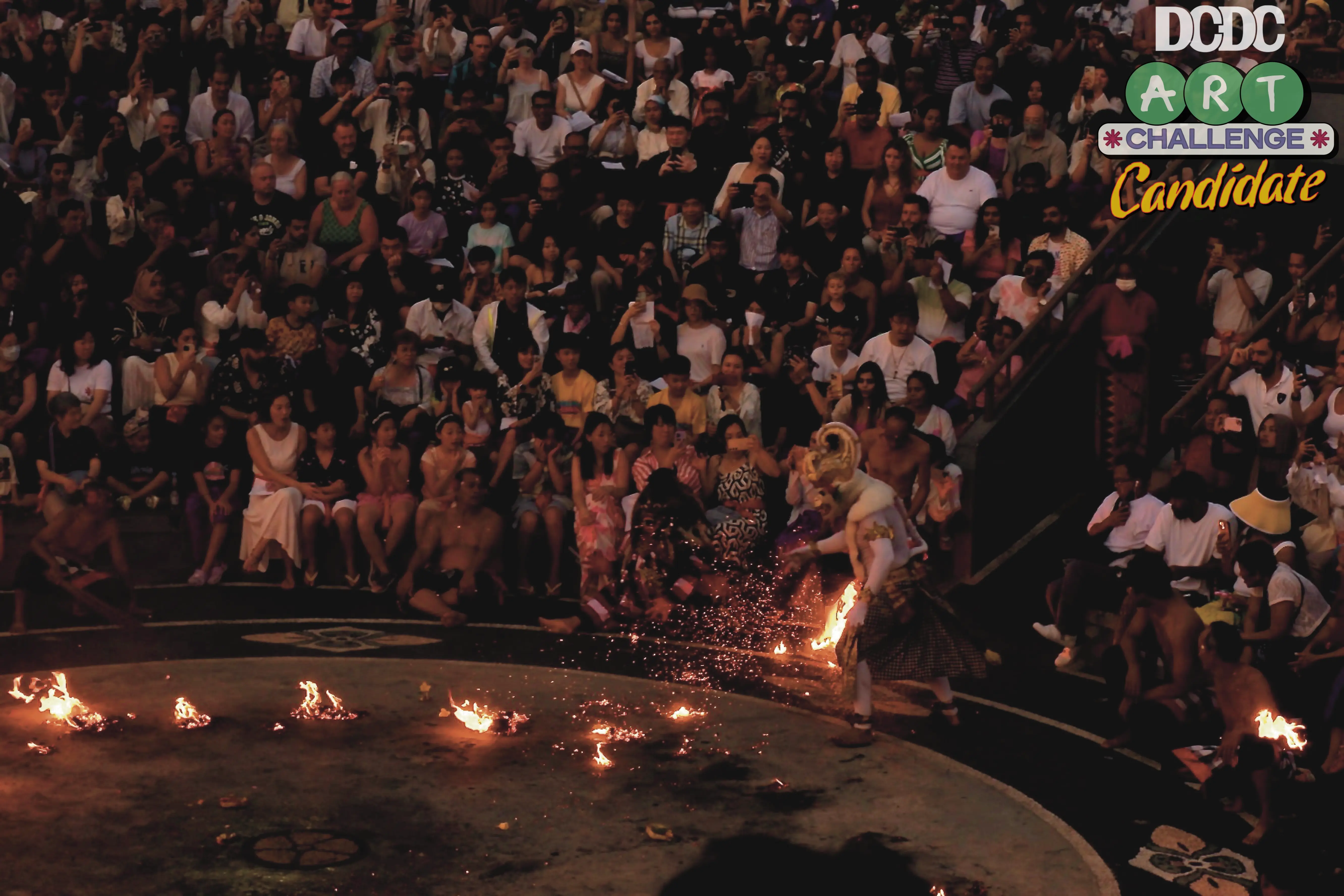 Dalam kepungan api dan sorak penonton, sosok Hanoman berdiri bukan sekadar tokoh dalam lakon Ramayana, melainkan penjaga semangat. Gambar ini mencoba melihat bahwa “api” bukan hanya elemen pertunjukan, tetapi juga simbol daya hidup budaya: sesuatu yang terus dijaga agar tidak padam, di panggung maupun di dalam diri manusia.