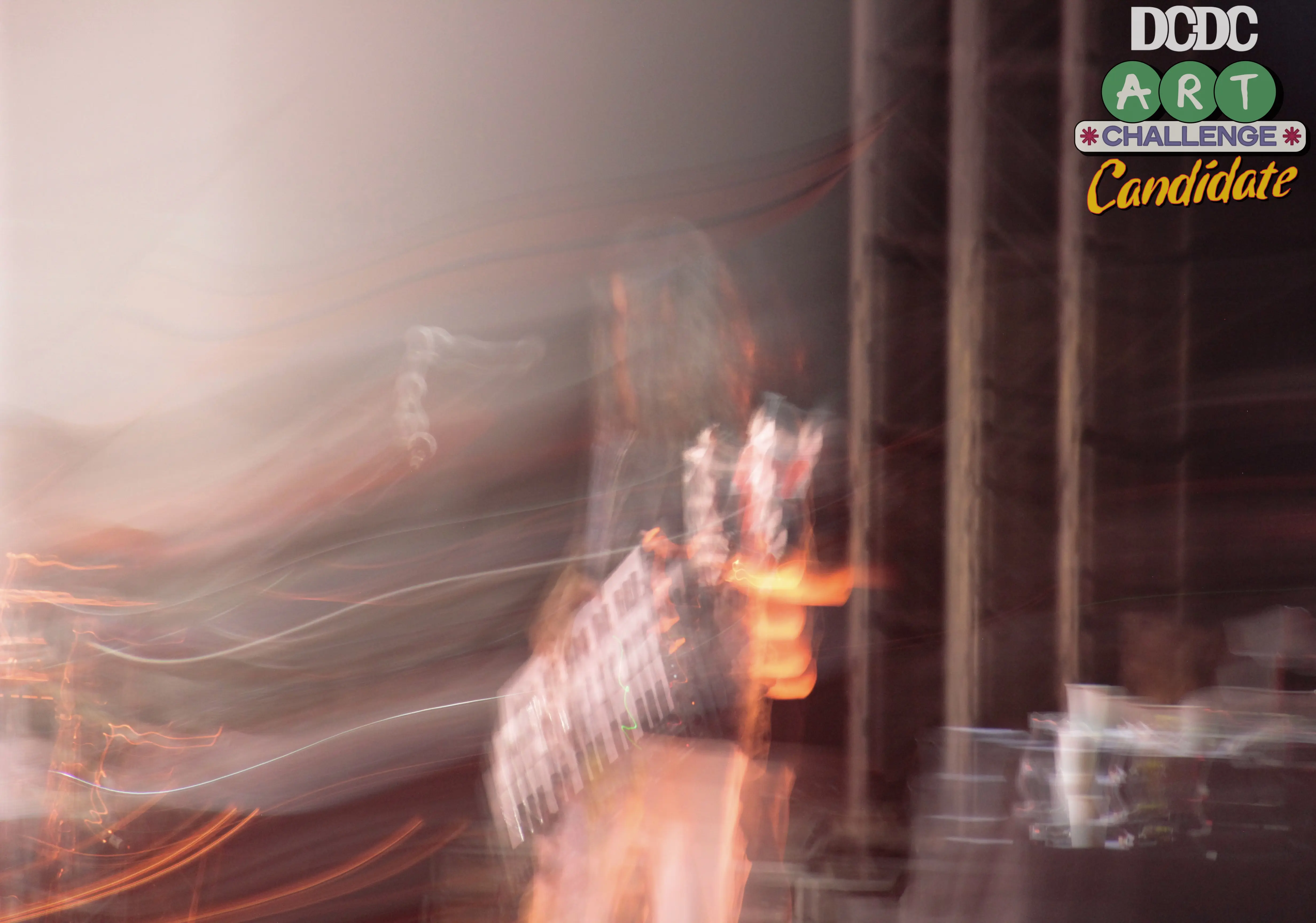 Paulus Neo, part of funkot band Obat Bius - on keytar