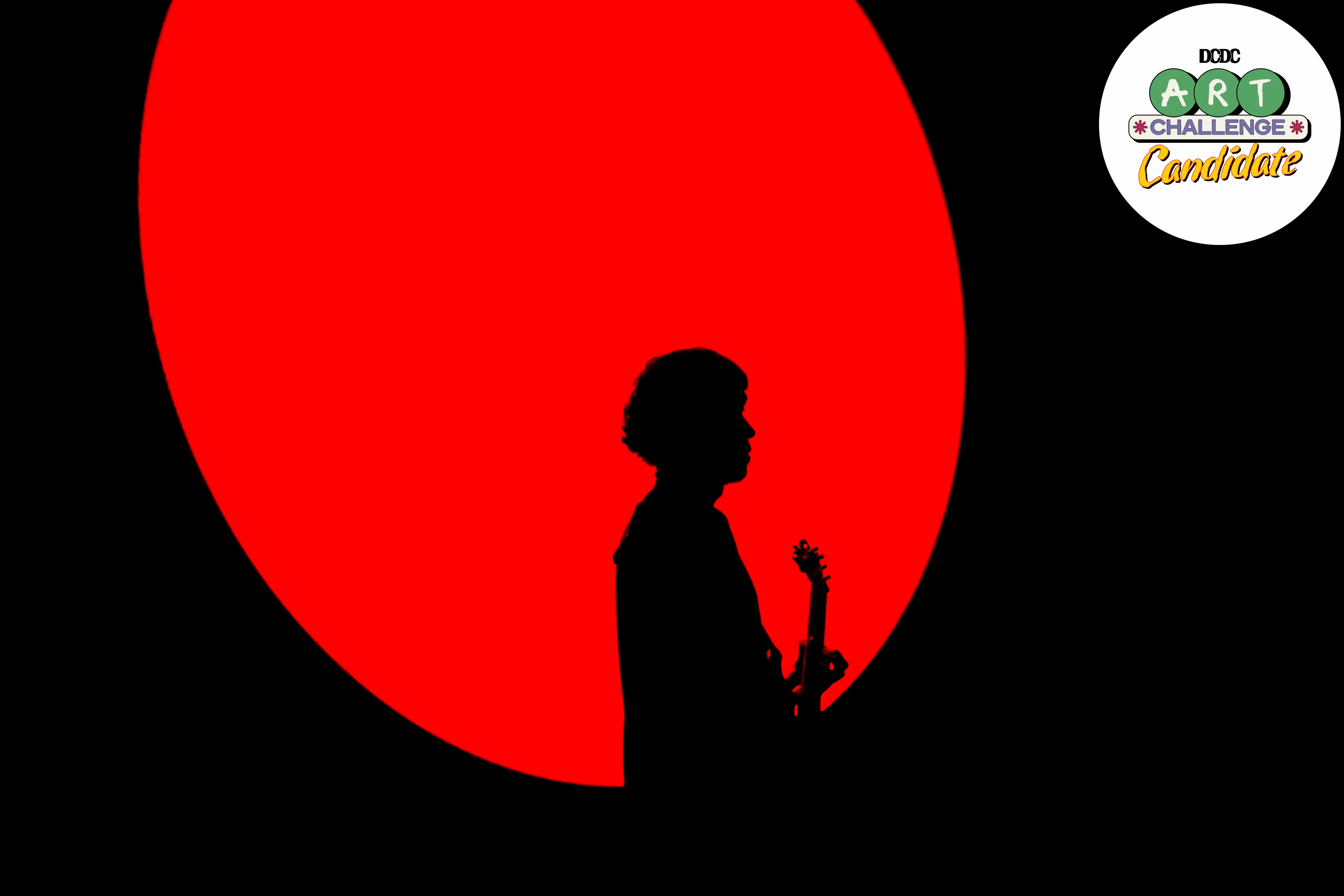Object: Vierratale, salah satu gitaris yang sedang memainkan nada nya menjadi sebuah siluet dari back light merah yg menjadikannya subject siluet.