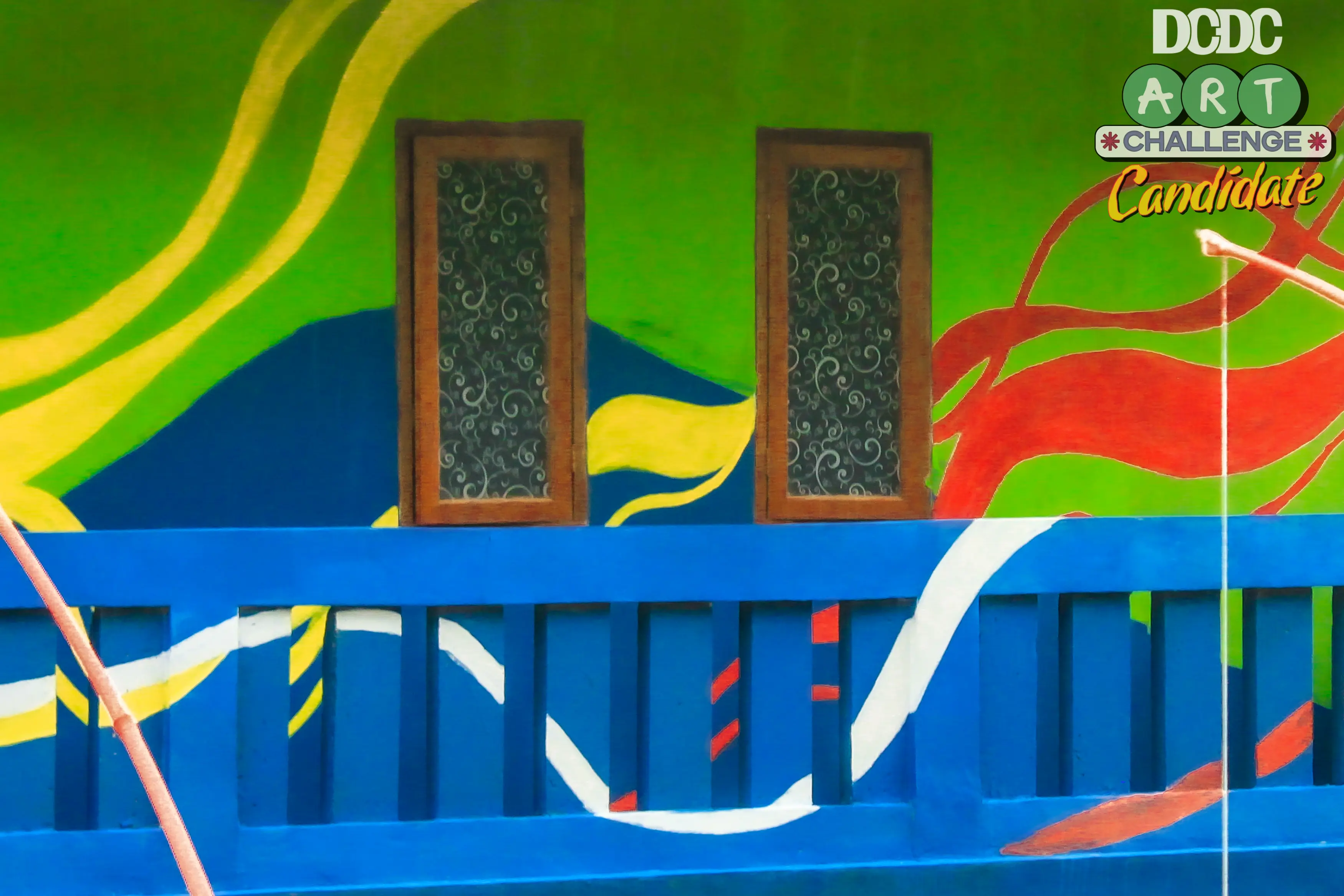 2 jendela sebagai mata, dan mural di pagar sebagai mulut senyum menandakan bahwa bangunan ini tersenyum