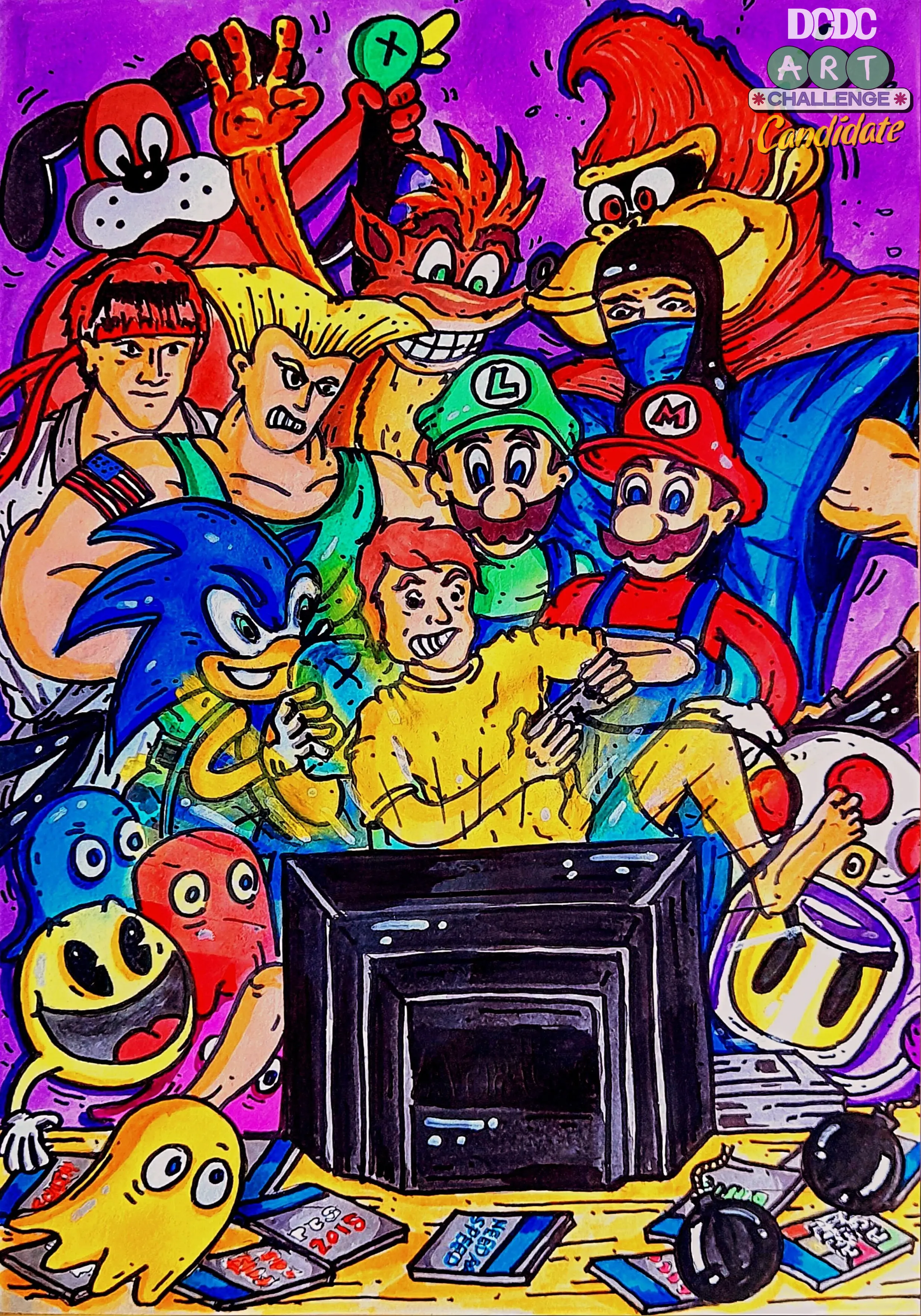 Seorang anak yang berusaha menyelesaikan permainan video game dengan ditemani tokoh-tokoh video game disekitarnya.