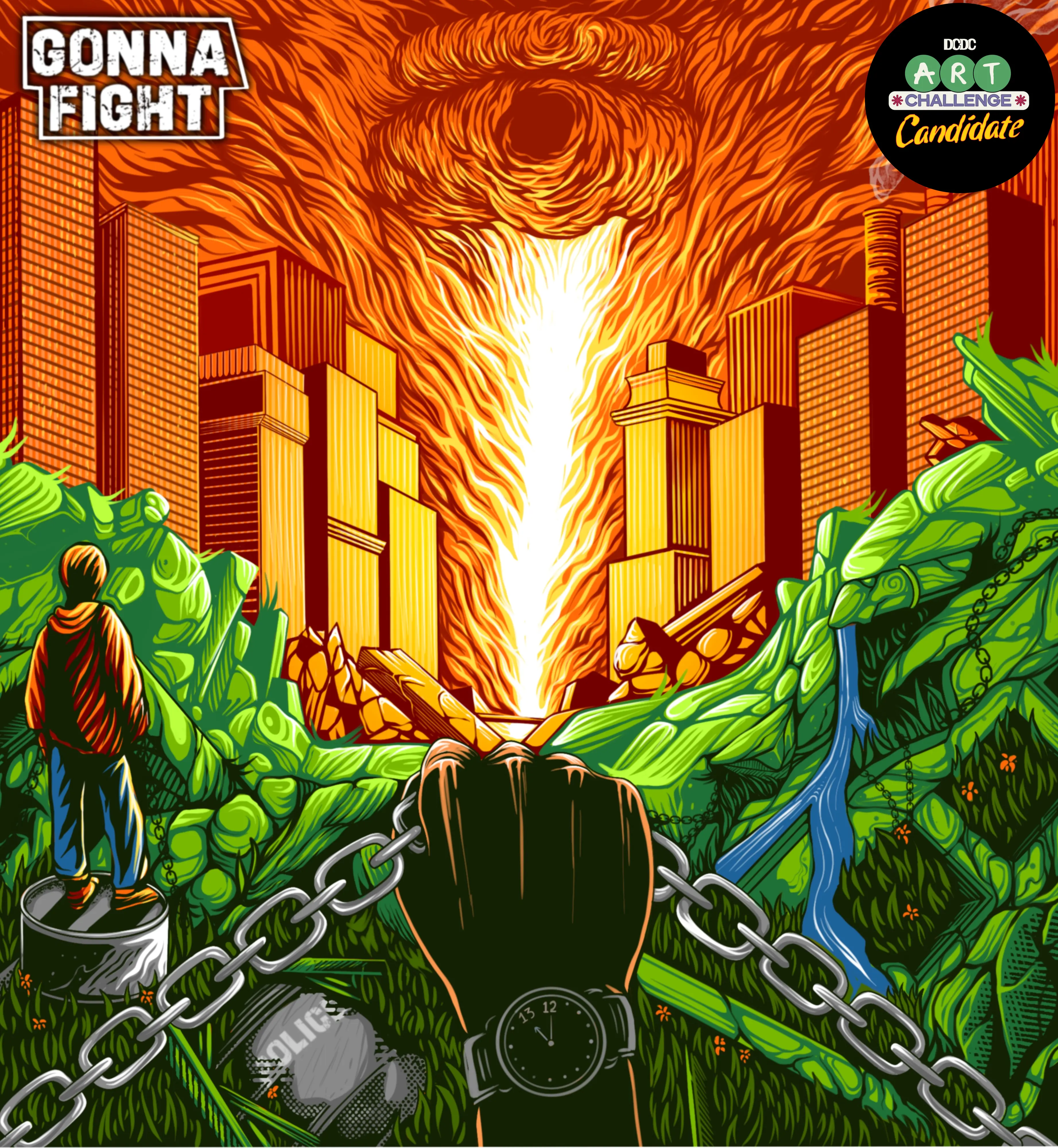 Ilustrasi ini adalah cover lagu dari band tumpang sari yang berjudul gonna fight, sebuah perpaduan menarik dari musik yang membakar semangat.
