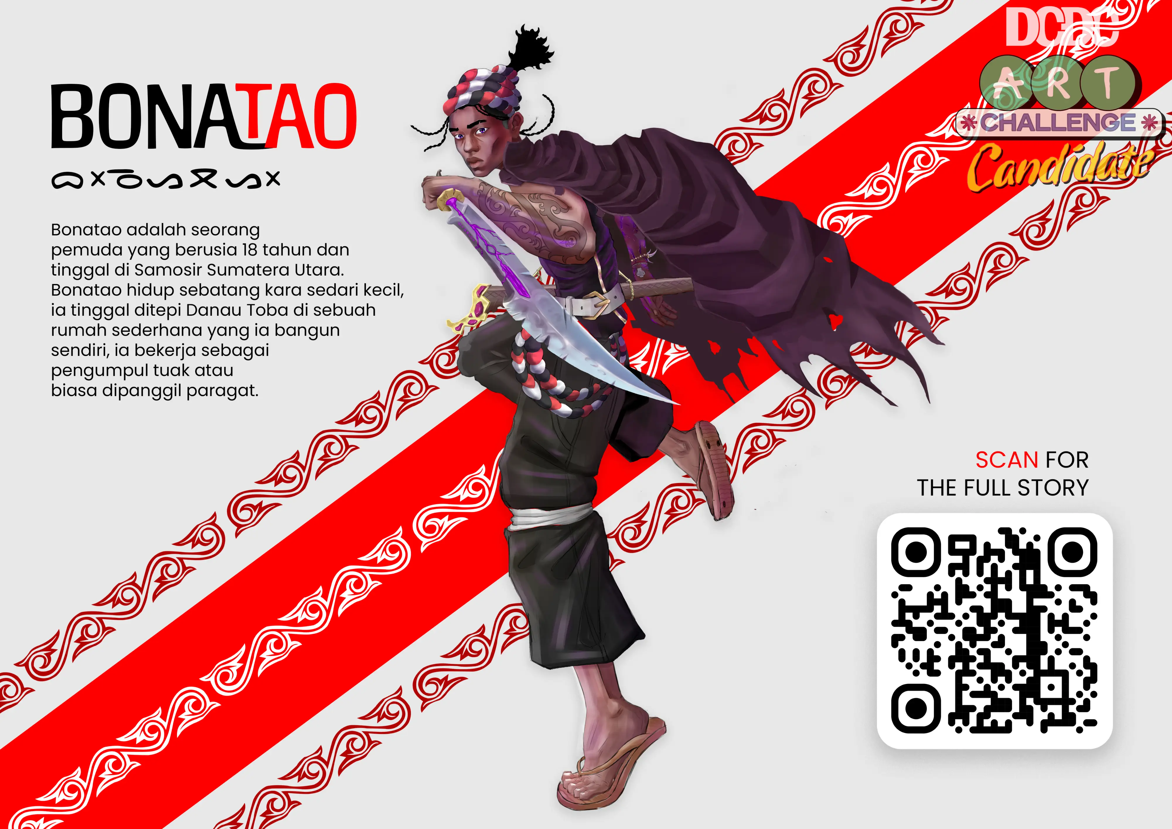 Namanya Bonatao, dia orang Samosir, yang ada Danau Tobanya itu. kerjanya maragat tuak atau ngumpulin tuak, kalau mau tau cerita fullnya baca dah itu ceritanya di qr huhhh....